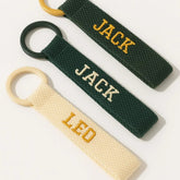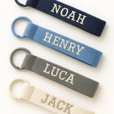 Each keychain features a durable fabric strap with a sturdy metal ring, making it easy to attach to backpacks, school bags, water bottles, or luggage. The embroidered name stands out clearly, helping children easily identify their belongings at school, daycare, or during travel.